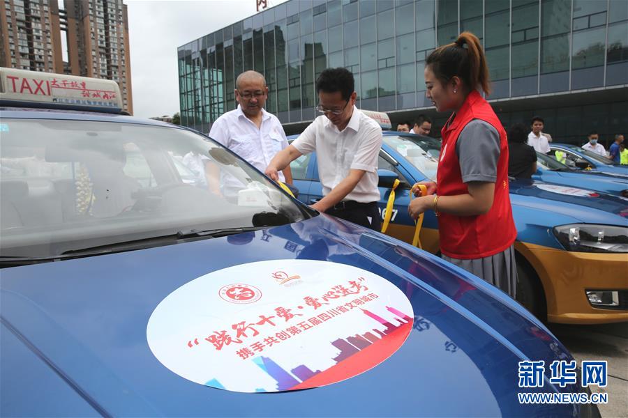 7月6日,在四川省内江国际会展中心,志愿者在为爱心送考车辆系黄丝带。 2020年全国高考即将拉开帷幕,各地纷纷做好各项准备迎接高考的到来。 新华社发(兰自涛 摄)