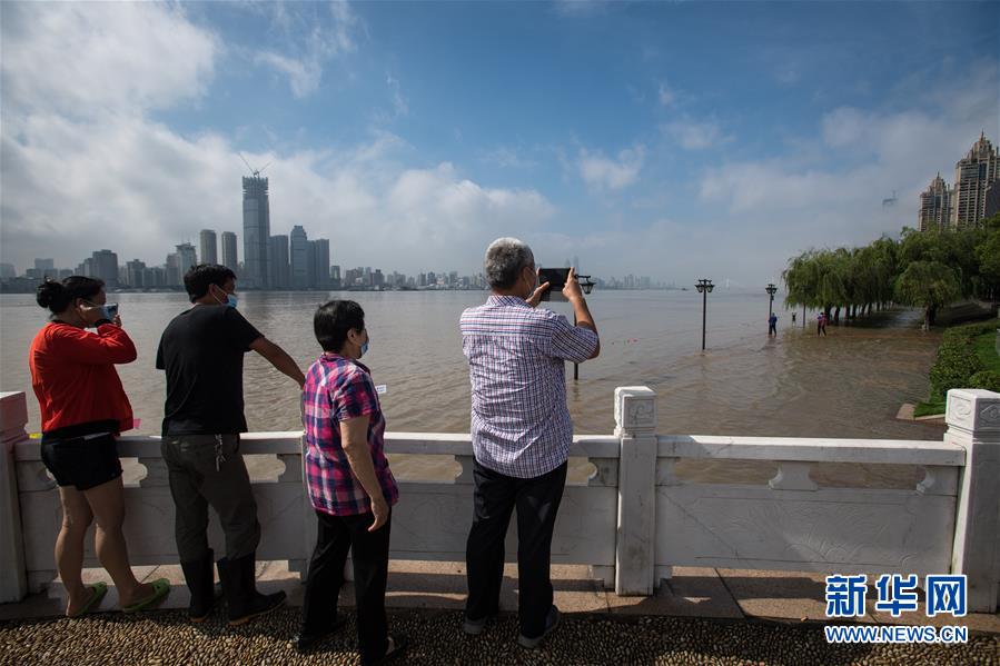 7月6日,市民在武昌江滩远眺。 新华社记者 肖艺九 摄