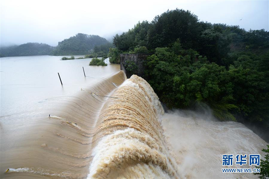 这是7月6日拍摄的澧县太青水库溢洪道。 近日,湖南省常德市澧县出现强降雨天气,造成部分地区农田被淹。 新华社发(陈振海 摄)