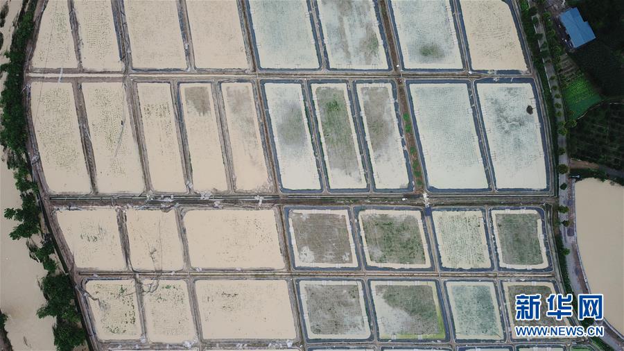 7月6日,在澧县甘溪滩镇,一处农田遭受洪水侵袭(无人机照片)。 新华社发(陈振海 摄)