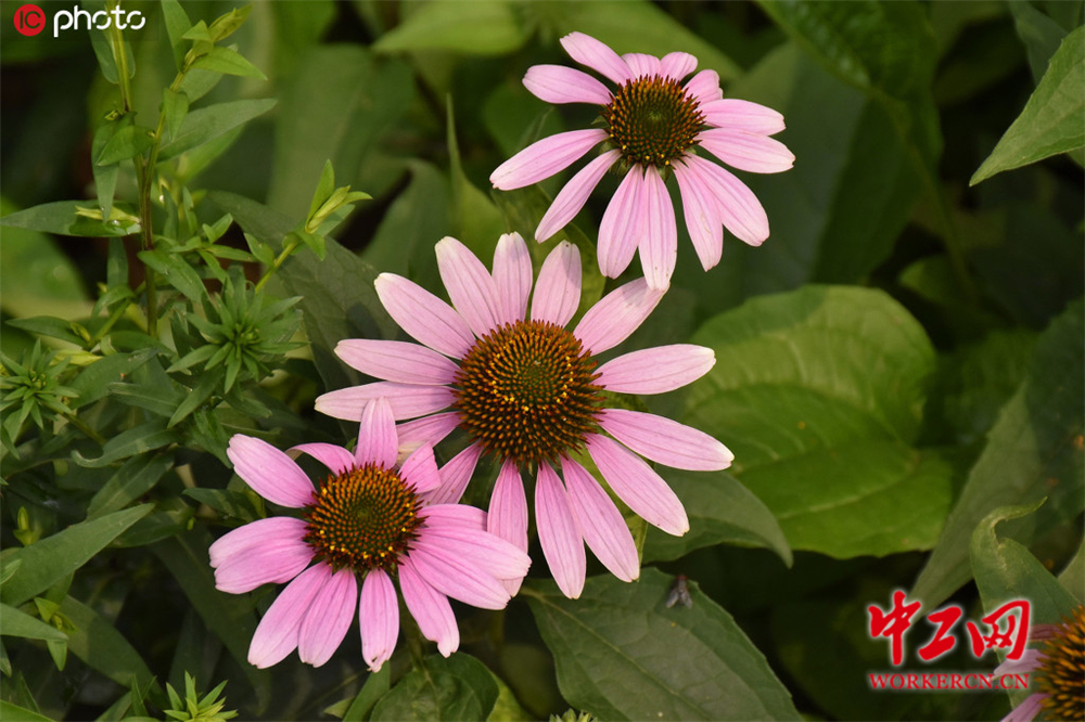 2020年7月4日,北京,北京植物园“绿旋风”松果菊五彩缤纷美不胜收。