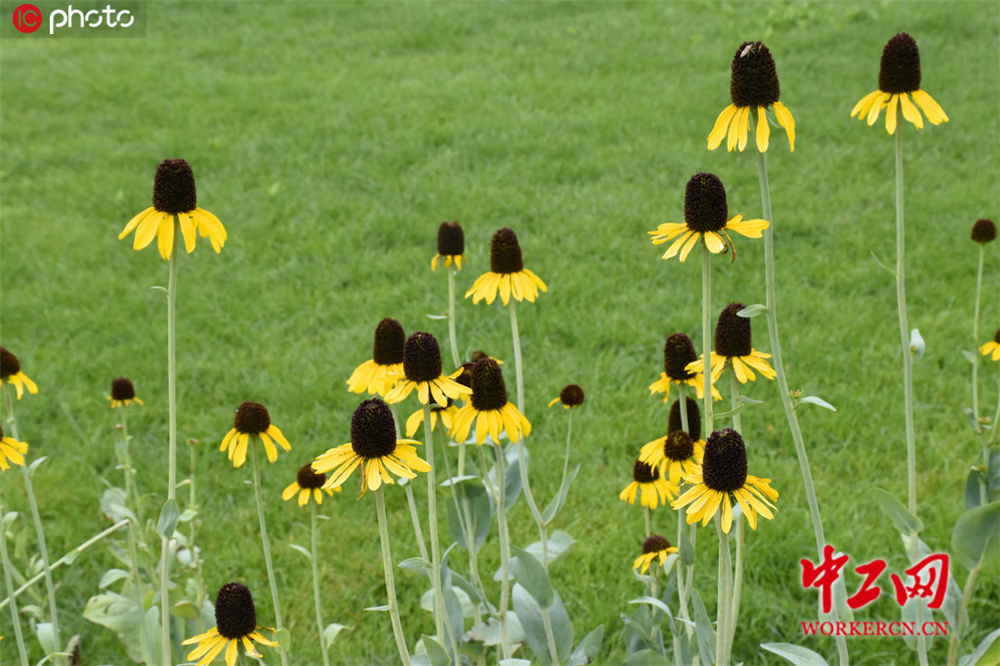 2020年7月4日,北京,北京植物园“绿旋风”松果菊五彩缤纷美不胜收。