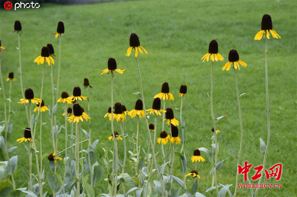 2020年7月4日,北京,北京植物园“绿旋风”松果菊五彩缤纷美不胜收。