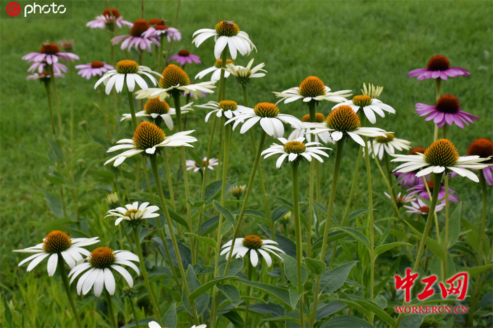 2020年7月4日,北京,北京植物园“绿旋风”松果菊五彩缤纷美不胜收。