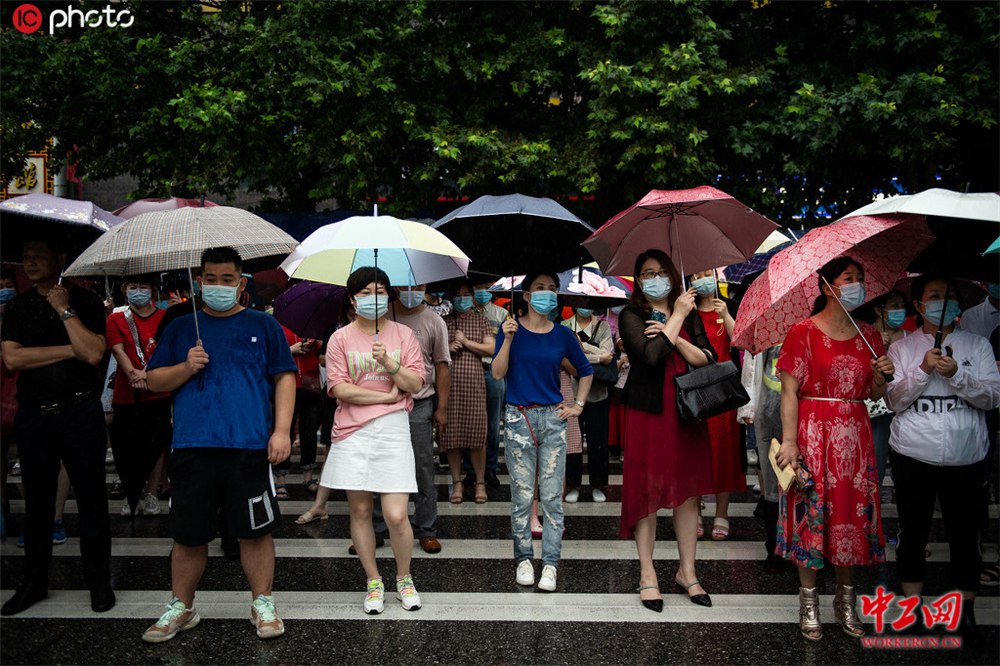 2020年高考首场结束 武汉考生家长冒雨等待