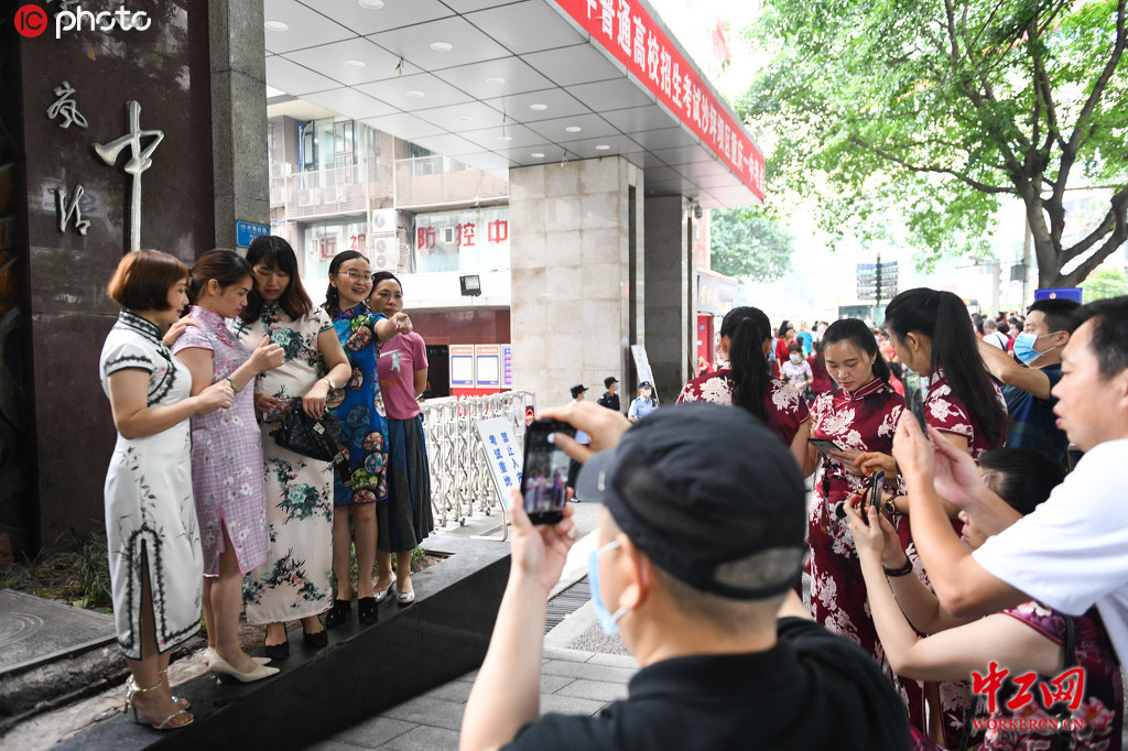 2020年7月7日,今日,2020年全国普通高考拉开帷幕,在沙坪坝区南开中学考点,众多家长们穿上旗袍、“对勾”T恤等为孩子加油,寓意旗开得胜。网友戏称一年一度的“旗袍大赛”又上演了。当日,重庆有18.97万名考生参考,全市共设置39个考区、101个考点6409个考场。