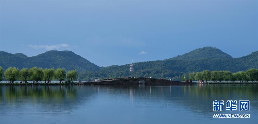 7月7日拍摄的晨曦中的杭州西湖景区。 当日清晨,在经历了连日阴雨后,杭州西湖景区迎来“雨过天青”的夏日美景。 新华社记者 徐昱 摄