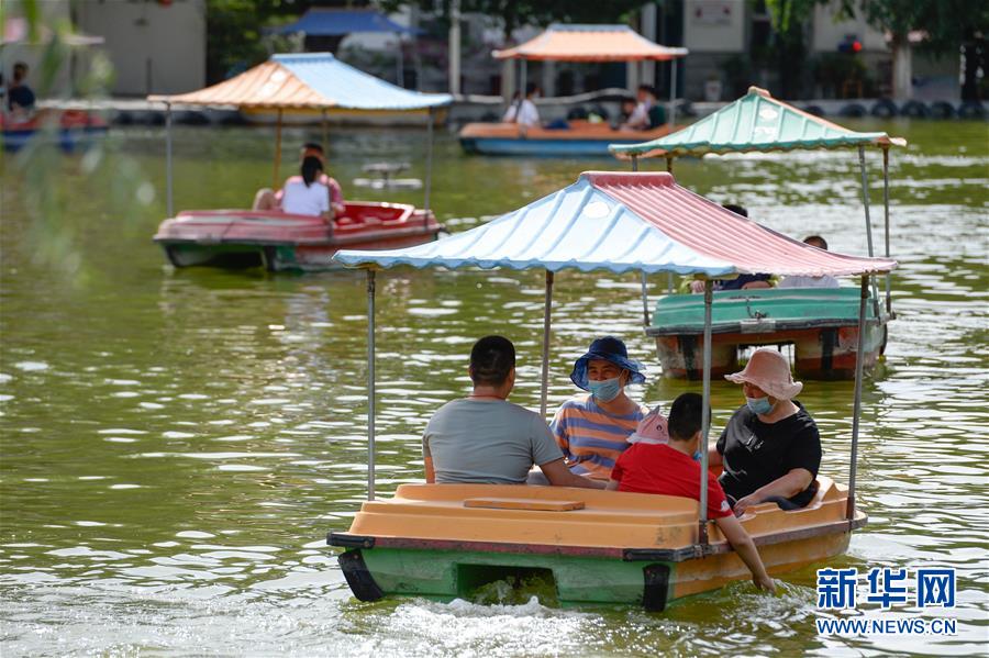 游客在乌鲁木齐红山公园划船(7月5日摄)。 新华社记者 丁磊 摄