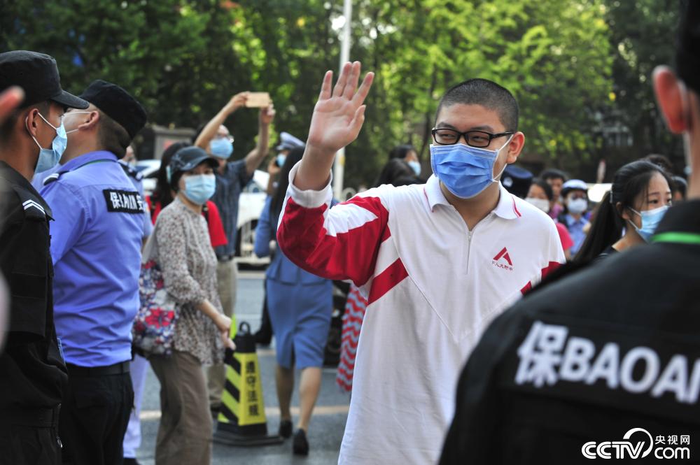 在中国人民大学附属中学考点外,考生准备步入考场。