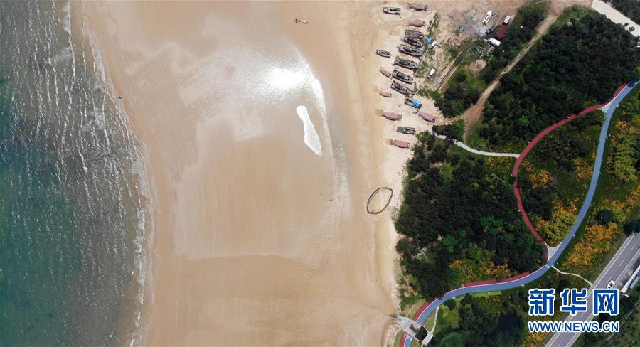 7月7日拍摄的紧靠海岸线的日照阳光海岸绿道(无人机照片)。新华社记者 王凯 摄