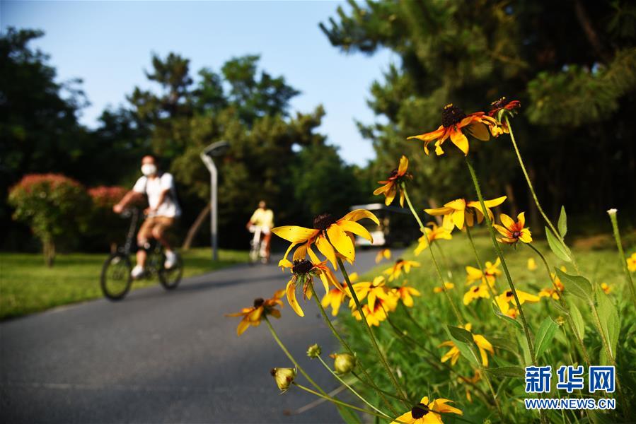 7月7日,市民在日照阳光海岸绿道骑行。 新华社记者 王凯 摄