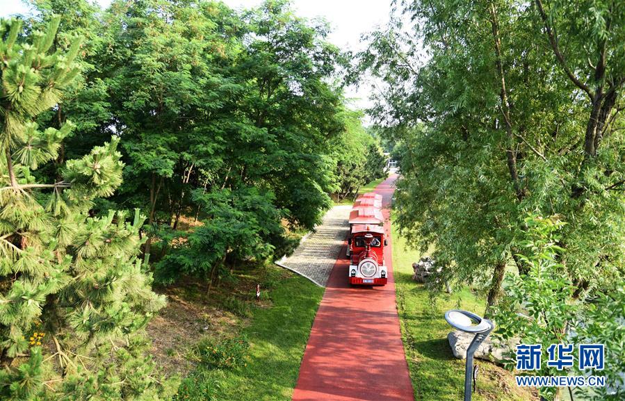 7月7日,游览小火车穿梭在日照阳光海岸绿道内。新华社记者 王凯 摄