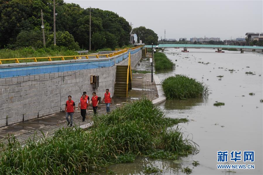 7月7日,吴兴高新区幻溇村党员志愿者在巡查河道。 近日,位于浙江北部的湖州市遭遇多轮降雨,东部平原河网普遍超警戒水位,水库山塘高位运行。7月5日12时30分,湖州市人民政府防汛防旱指挥部将防汛应急响应提升至Ⅲ级,要求各地密切监测汛情,切实做好各项防范工作,确保安全度汛。 新华社记者 黄宗治 摄