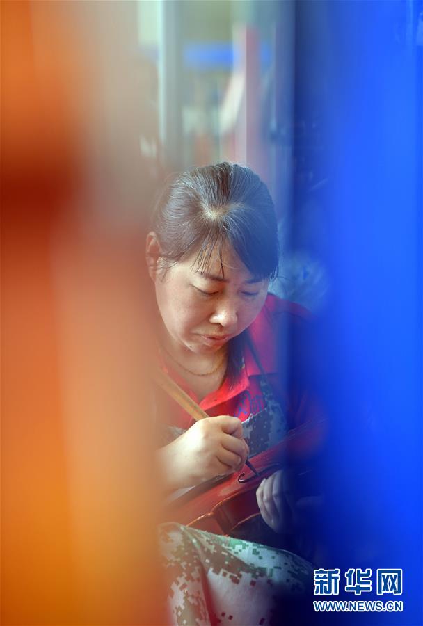 工人在河南驻马店市确山县提琴产业园提琴生产车间工作(7月3日摄)。 新华社记者 李嘉南 摄
