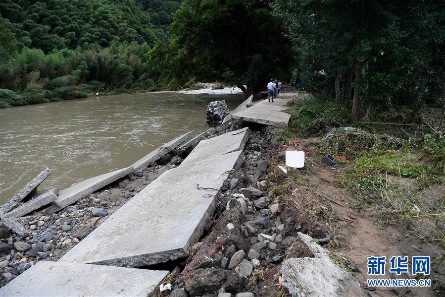 7月7日,安徽省旌德县孙村镇一条沿河道路被洪水冲垮。 新华社记者 刘军喜 摄