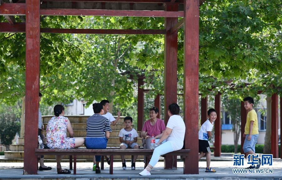 天津市西青区精武镇付村富家湾小区的居民在凉亭休息(7月7日摄)。 新华社记者 李然 摄