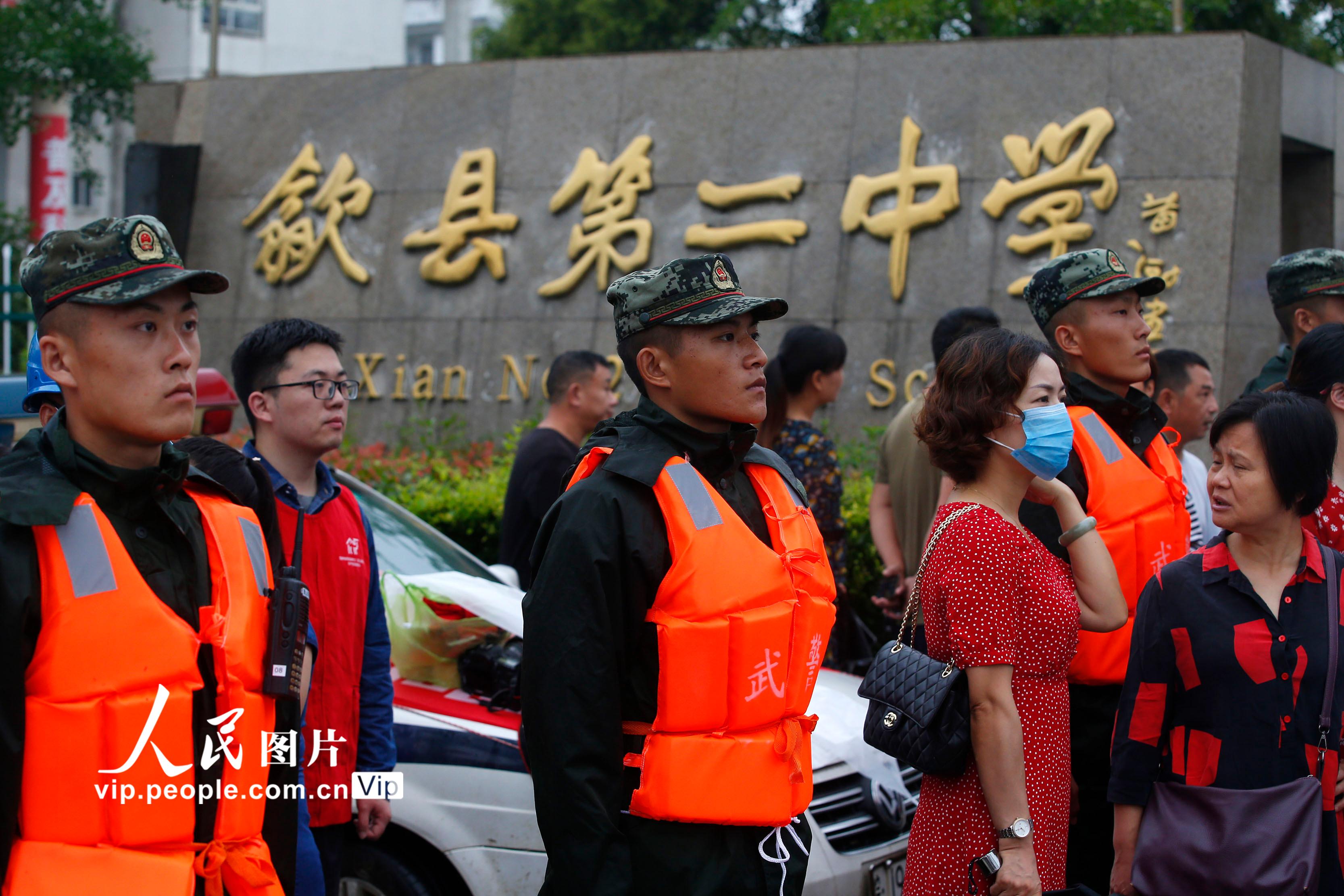 2020年7月8日,安徽省黄山市歙县二中考点,武警官兵正在执勤。施亚磊/人民图片