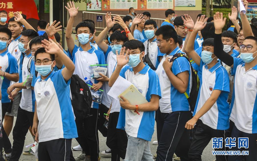 7月8日,河北文安县第一中学考点的高考生走出考场。 当日,全国部分地区2020年高考结束。 新华社记者 李晓果 摄