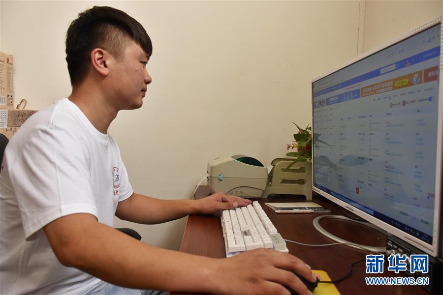 7月8日,张亚钊在处理网络订单。 新华社记者 韩朝阳 摄