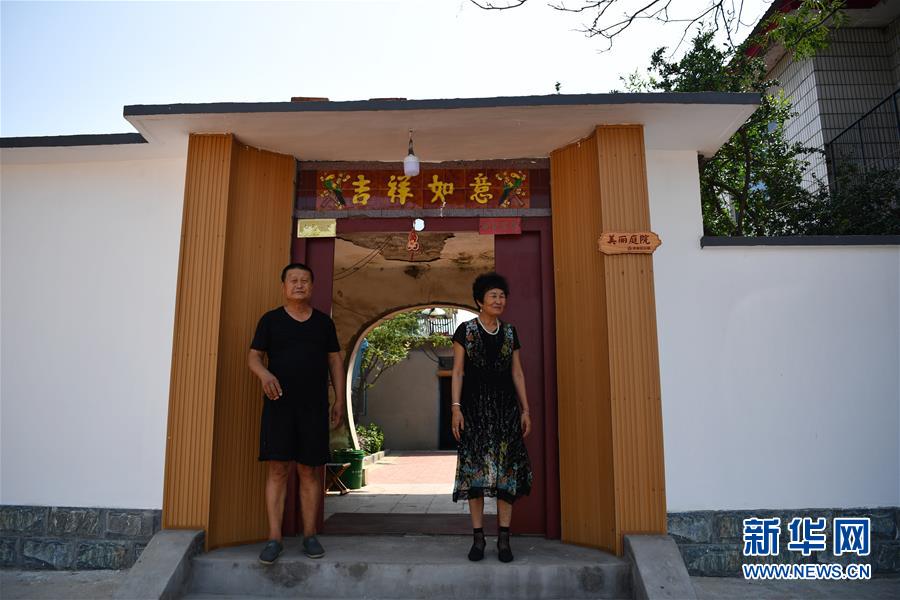 西官房村村民在自家门口送客(7月8日摄)。 新华社记者 李然 摄