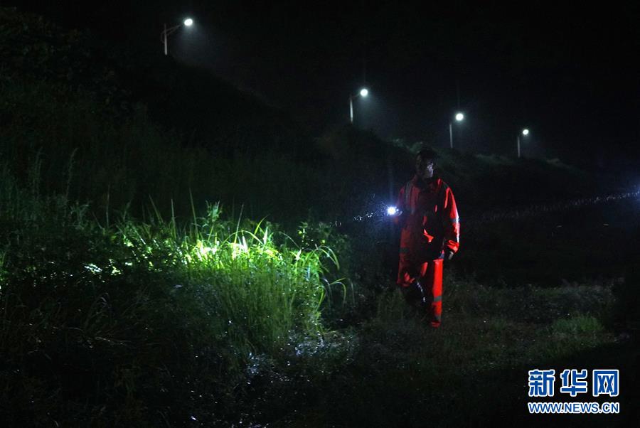 7月9日,邵忠如冒雨夜巡圩堤。新华社记者 万象 摄
