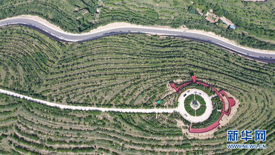 这是7月9日在宁夏彭阳县青云湾梯田公园拍摄的农村公路(无人机照片)。 新华社记者 刘海 摄