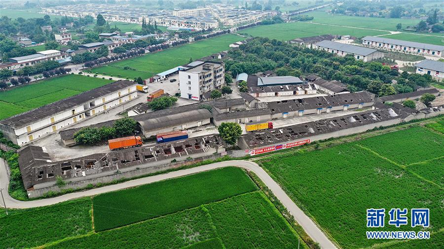 受爆炸事故影响,附近厂房仓库房顶受损(7月9日摄,无人机照片)。新华社记者 王曦 摄
