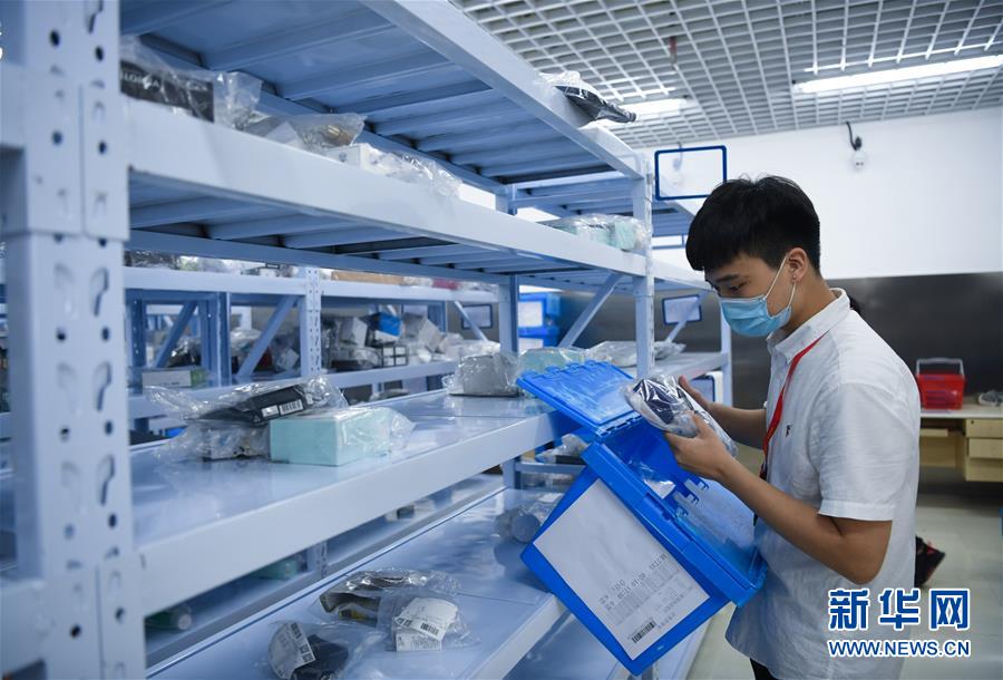 7月10日,工作人员在三亚凤凰国际机场新增离岛免税提货点清点免税商品。 新华社发(沙晓峰 摄)