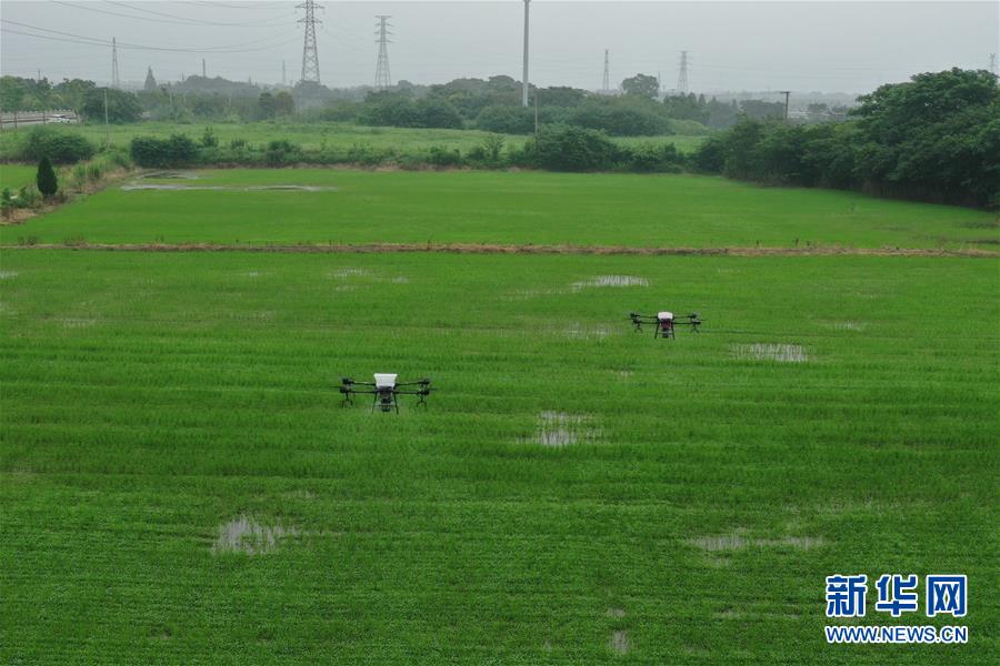 7月10日,植保无人机在稻田上空进行施肥作业(无人机照片)。 近日,浙江湖州吴兴区八里店镇尹家圩粮油植保农机专业合作社聘请技术人员,使用植保无人机对3300余亩水稻进行施肥作业。据了解,该合作社今年首次全面启用智能化农业技术和设备进行播种、施肥、喷药等作业,既提高了管护效率,又降低了生产成本。 新华社记者 黄宗治 摄