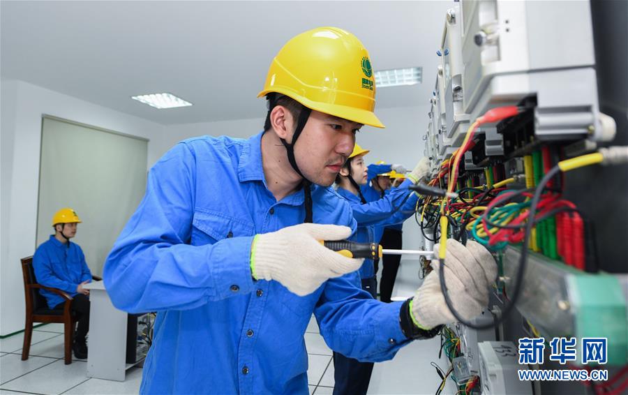 7月10日,慈溪市供电部门的青年职工参加装表接电岗位技能比武。 新华社记者 徐昱 摄