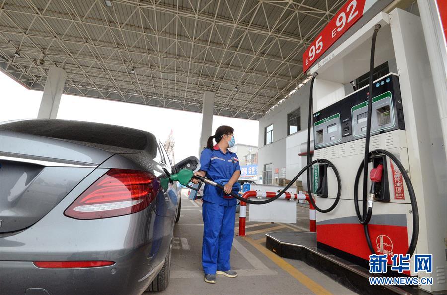 7月10日,河北省邯郸市峰峰矿区一家加油站的工作人员给车辆加油。新华社发(郝群英 摄)