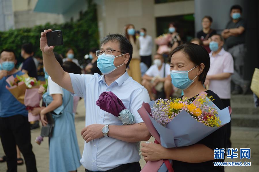 7月10日,在北京市陈经纶中学考点外,家长手捧鲜花在校门外等候。 当日下午,北京2020年高考结束。今年北京高考时间为7月7日至10日。 新华社记者 彭子洋 摄