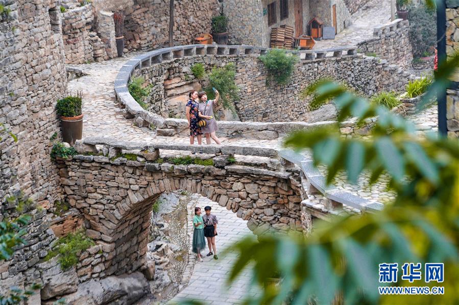7月10日,游客在涉县更乐镇大洼村游玩。新华社记者 王晓 摄