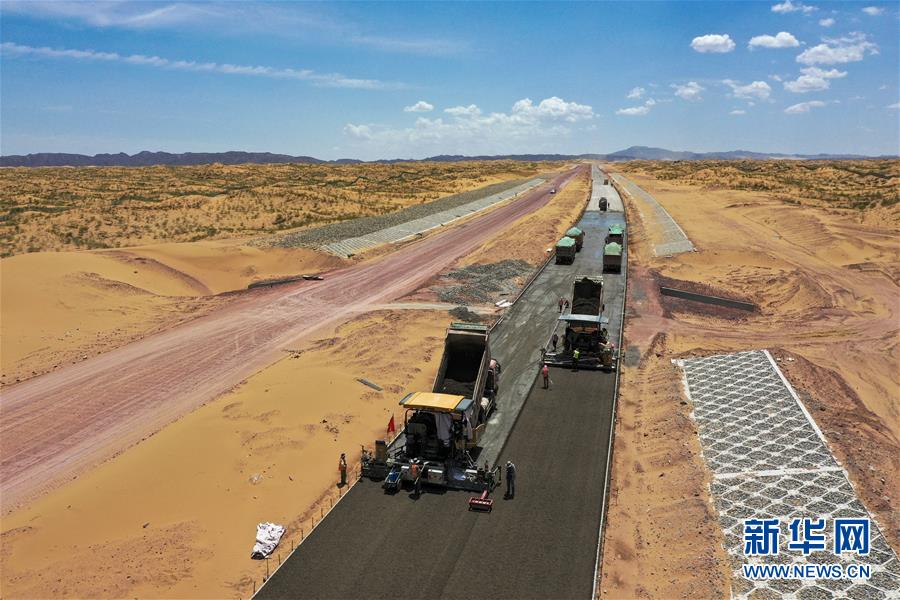 宁夏首条沙漠高速公路建设正酣