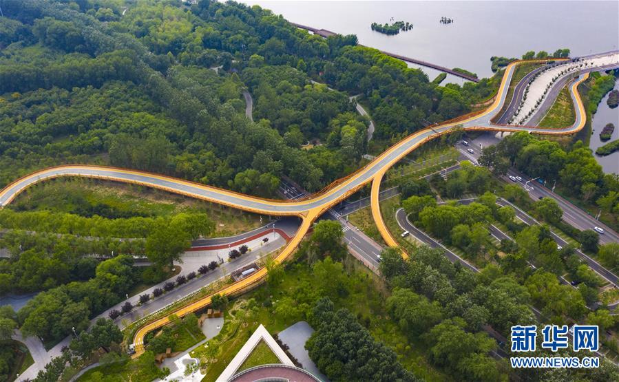 7月10日拍摄的唐山市超级绿道项目南湖段景色(无人机照片)。新华社记者 杨世尧 摄
