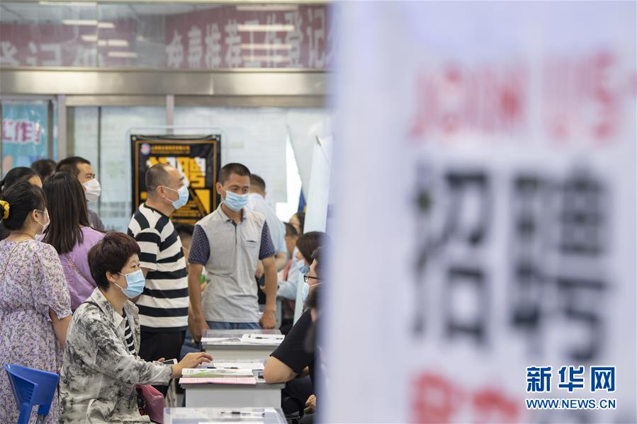 7月11日,求职者在招聘会现场与用人单位工作人员交流。 当日,哈尔滨市道外区职业介绍服务中心举办大型户外招聘会,来自教育、医药、互联网等多个行业的150余家企业提供了超过800个工作岗位,吸引求职者前来应聘。 新华社发(张涛摄)