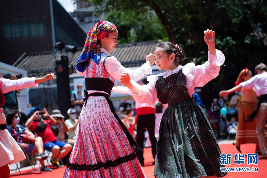 7月11日,演员在“庆祝澳门历史城区申遗成功15周年嘉年华”上表演土风舞。新华社记者 张金加 摄