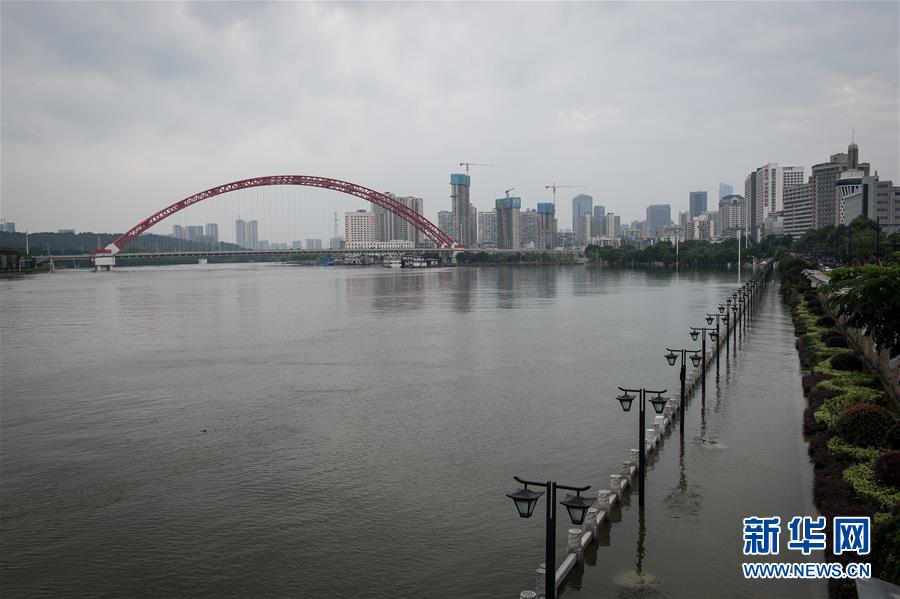 武汉龙王庙观江平台被上涨的江水淹没(7月11日摄)。 受上游来水、持续降雨等因素影响,长江汉口站水位连日来持续上涨。截至11日21时,长江汉口站水位已达到28.51米,超警戒水位1米以上。武汉市防汛抗旱指挥部专家组组长丁心红介绍,未来几天长江汉口站水位仍将持续上涨,防汛形势十分严峻。 新华社记者 肖艺九 摄