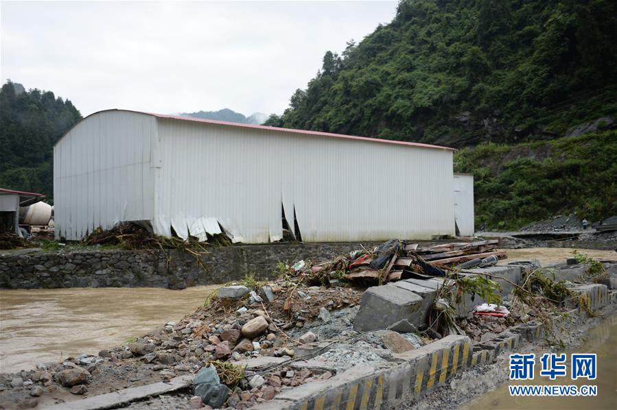 7月11日,在永顺县永茂镇,吴明木所在的建筑工地堤岸与房屋被洪水损毁。 新华社发(陈振海 摄)