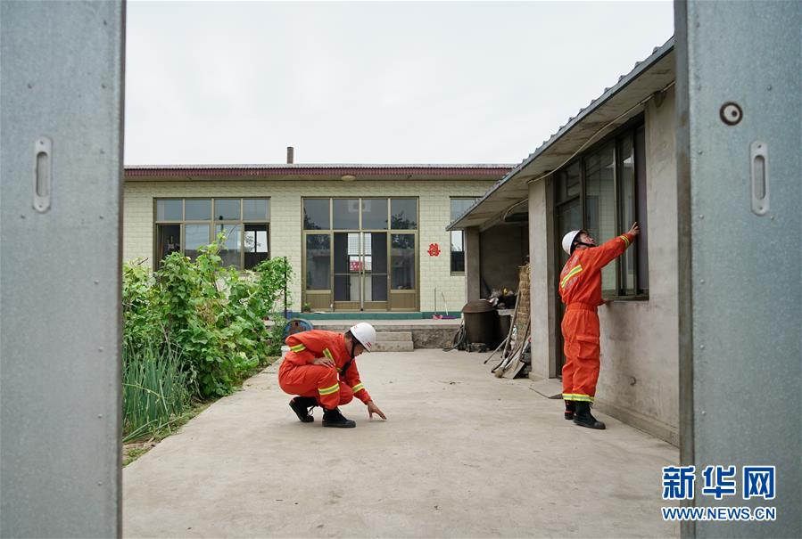 7月12日,消防救援人员在河北省唐山市古冶区卑家店镇前巍峰山村村民家中排查。 新华社记者 牟宇 摄