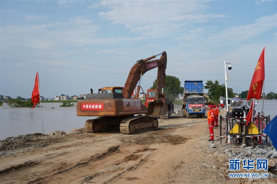 这是7月12日拍摄的问桂道圩堤施工现场。 新华社记者 张浩波 摄