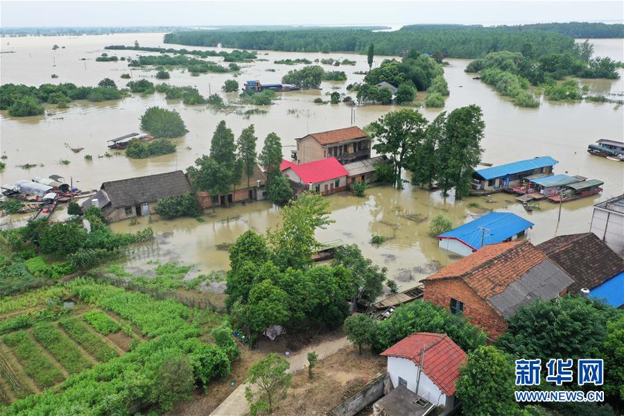 7月11日,在沅江市琼湖街道莲花岛村,洪水淹没了部分房屋和土地(无人机照片)。 新华社发