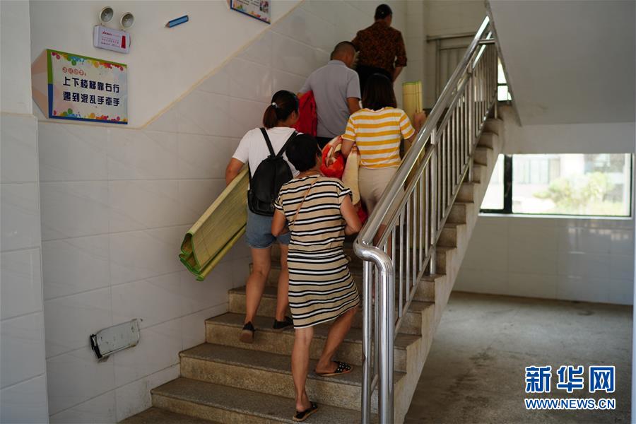 7月13日,在永修县湖东学校安置点,群众携带行李前往安置房。 7月12日晚,江西省九江市永修县三角联圩出现溃堤险情,当地政府紧急组织群众转移,并设立安置点安置转移群众。截至13日下午,暂无人员伤亡报告。 新华社记者 周密 摄