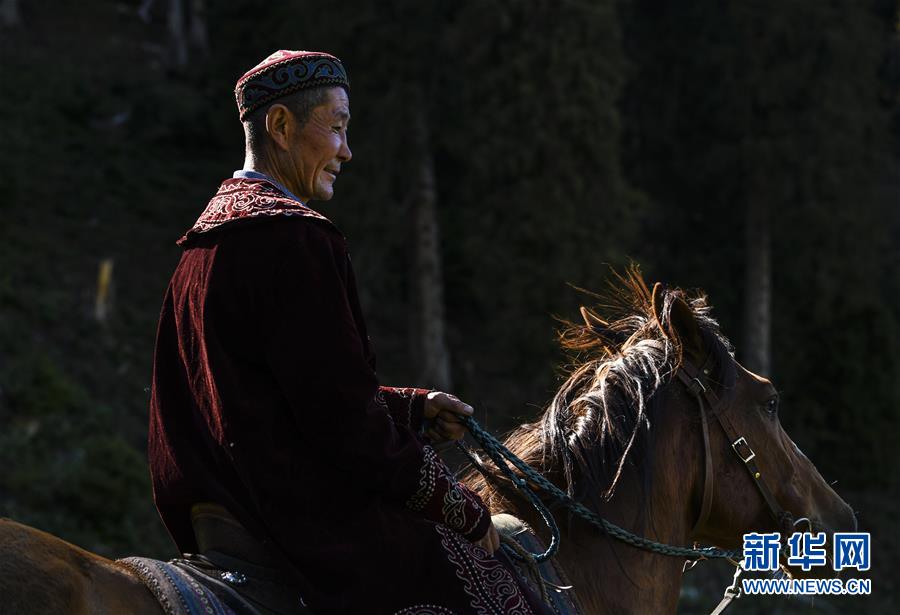 在新疆伊犁特克斯县境内的夏牧场里,一位牧民在放牧(6月30日摄)。 新华社记者 王菲 摄