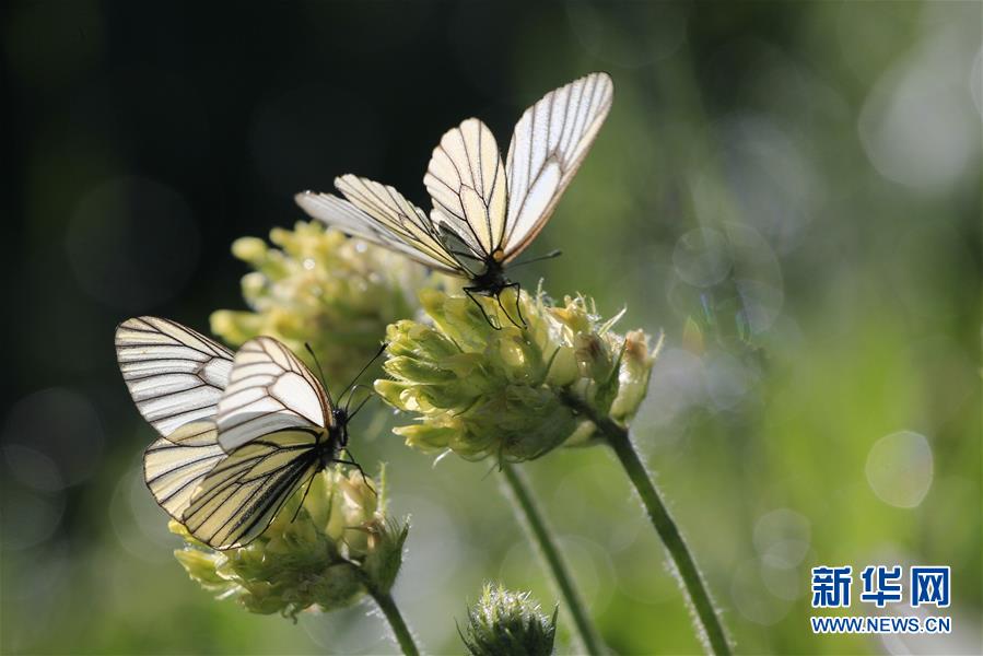 7月12日,在甘肃省武威市天祝县境内的祁连山天然林保护区,蝴蝶在花间停留。 盛夏时节,祁连山区山花烂漫,彩蝶飞舞,美不胜收。 新华社发(姜爱平 摄)