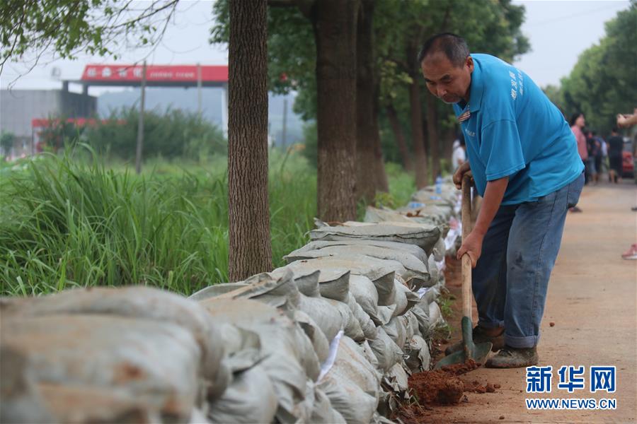 湖南省津市市白衣镇的村民在子堤旁铲除散落的砂土(7月12日摄)。 连日来,在西洞庭湖区面积10倍于杭州西湖的毛里湖,险情十万火急。当地干部群众全力以赴巡堤除险,“做最坏准备、尽最大努力,誓死捍卫毛里湖”。 新华社记者 蔡潇潇 摄