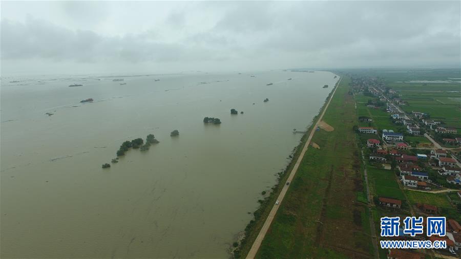 汨罗市磊石垸附近江水处于超警戒水位状态(7月10日摄,无人机照片)。 新华社记者 陈泽国 摄