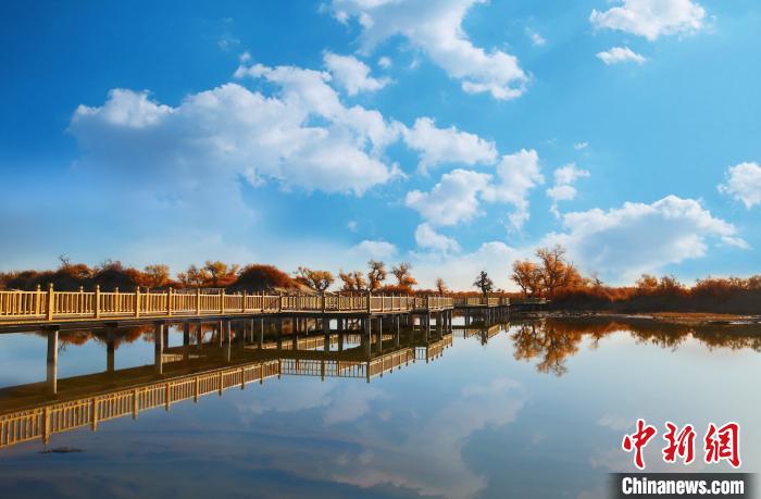 阿拉善盟林草局副局长王新民介绍说,目前额济纳旗居延海两岸胡杨林面积由36万亩增至45万亩,居延海再现往日碧波荡漾的景象。