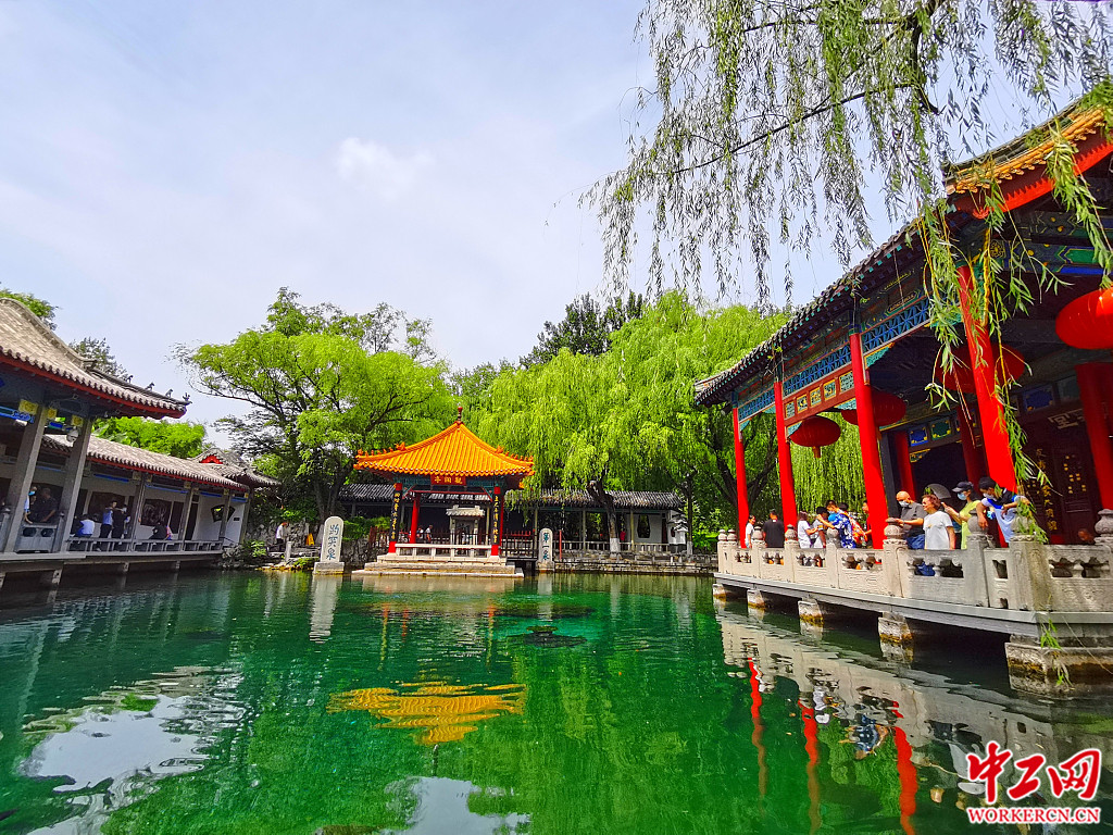 2020年7月14日,济南,降雨过后趵突泉三股水呈现出趵突腾空景像,吸引游客停留脚步拍照。严海宁/视觉中国