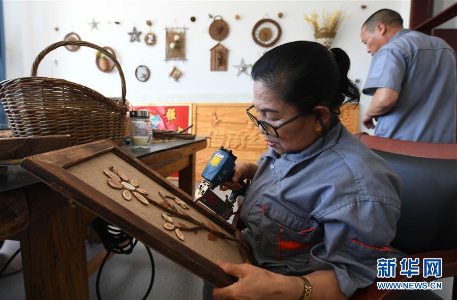 7月14日,在善满家园残障人综合服务中心,李晓利在制作手工艺品。新华社记者 林宏 摄